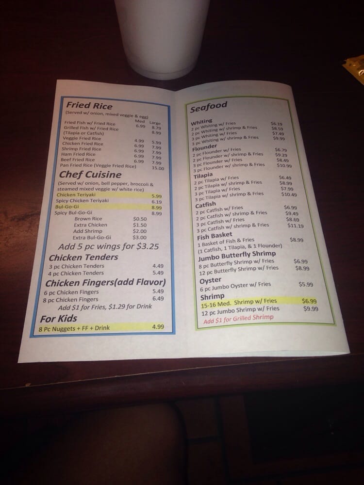 5 Wings, 10 Shrimp, 1 Fish and Veggie Fried Rice Special
